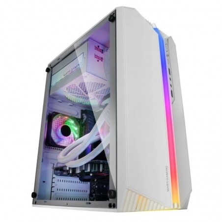 Iluminação frontal ARGB com 12 modos espetaculares e uma ventoinha traseira FRGB incluída. Tamanho MICRO-ATX compacto com espaço para líquidos de até 240 mm