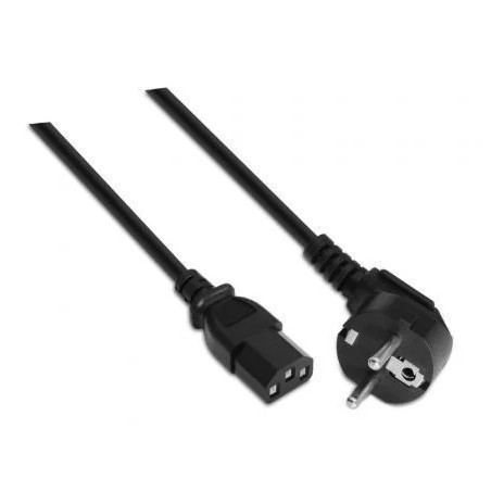 Conector macho CEE7 em uma extremidade e fêmea C13 na outra.